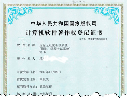 图0 在线考试系统软件著作权登记证书